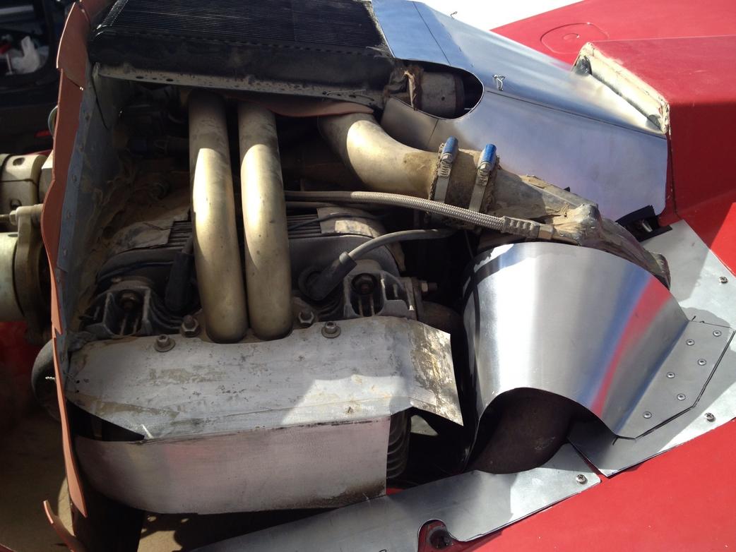 Sean Sweeney Posted February 7, 2013 Author Report Posted February 7, 2013 The Ogars sold in the US came with out the engine. They were test flown at the factory with a Limbach SL 1700, which was then removed before shipping. The recommended engine from the US importer, Aerosport, was a Revmaster 2100d Turbo made here in the US. This is the engine installed in mine. It has very little total time on it, and it was overhauled less than 50 hours ago. It puts out about 75 hp, and being turbo charged, should put out full rated power up into the teens. Some came with an optional Maloof metal adjustable prop, that later had some problems with the blades separating (not good!), however mine has a wood fixed prop. The cooling baffles were all missing, and it appears to have been flown that way. I decided to fabricate some temporary baffles for the ferry flight home. I still need to add some rubber seals. I will keep a close eye on the cyl head temps. My long term plan is to change it to updraft cooling as the pusher configuration lends itself well to that set up, and build a much lower profile cowl (to get every LD point I can!) Quote