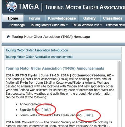 Steve Sliwa Posted May 25, 2014 Author Report Posted May 25, 2014 (edited) Well, we’re down to a mere three weeks until the start of our biggest and best TMGA Fly-In. The response from our flying buddies has been outstanding, and we’re anticipating a fabulous event in a new and exceptionally beautiful flying location. If you’re “on the fence†about whether to come, there’s still time to register and join the party.We’re expecting 35-40 aircraft and an additional number of very serious pilots looking to buy a TMG. Add in co-pilots and we’ve got quite the gathering going. The map at the bottom shows most of our attendees. The actual map can be found via the Members > Maps > 2014 Fly-In button.Many pilots are arriving on Wednesday and several are leaving on Monday (Thursday – Sunday being the official days). As they say: come early and stay late.We’ve got a great schedule lined up: informational briefings in the morning – including a WINGS segment on high density altitude operations and oxygen physiology), organized fly-outs to local airport restaurants for lunch, fabulous soaring in the afternoon, great dinners, and a marvelous after-banquet talk by Peter Lert on his Himalaya flying expedition. Oh, and there’s the potential to have your plane photographed against the incomparable Sedona Red Rock landscape by noted aviation photographer (and Lambada owner) Ted Grussing.The logistical details can be found in the Forum section of the website and does not need repeating here. Go to: Home > Touring Motor Glider Announcements tab (left side, vertical group, second light blue tab) > third bullet point – Fly-In planning, and hit “linkâ€. This brings you to the Forum section > go to the last page and look for the recent Threads containing all the information. See picture at bottom.Here’s what is important: you need to officially register, and pay, which can be accessed via the Members tab > TMGA Store > Events > registration; Friday night dinner/show; and Saturday night banquet/awards/Lert presentation. All this can be accomplished on these pages either through PayPal or with your credit card. There are “hard-deck†cut-offs for the two dinners: we must prepay for all dinners by June 1st and this count will include only those who have paid us. We will not be able to reduce the count (we’re charged for those dinners) but we do have the opportunity to add to our dinner totals after the cut-off, depending on availability of the respective dinner facilities. Note, the Mexican restaurant at the Quality Inn is no longer operating (yes, this came as a surprise to hotel, and us), but we have made arrangements with Rosalie’s of Sedona to cater the banquet. Rosalie’s is a well-known area restaurant and catering operation. The menu now will be a choice of Tuscan Chicken or Brisket of Beef, plus all the side dishes. The dinner will still be buffet-style, served by Rosalie’s staff. The price will be the same as before, and please note that this price includes taxes and tips, so it is quite reasonable for a full-scale dinner. Please sign up via the registration process as soon as possible.Hotel. We’re staying at the Quality Inn of Cottonwood. The room includes a great breakfast and we have good rates. It’s also where we will be having our daily briefings and the banquet. We already occupy 36 of their 52 rooms. They tell me that they only have 7 rooms left to rent for our time period. Book Now! There will be options at other area hotels, but we picked this property as our first choice.Souvenir coffee mugs. These are specific to Cottonwood/Sedona and we will be ordering only enough for those who prepay (Members > TMGA Store > Merchandise > 2014 coffee mug). Note, a mug is included free with each $25 pilot registration fee. All additional mugs are $10. The cut-off is June 5th for us to be able to drop-ship them to the Event.Cars. See the information in the Forum postings.Outside activities. A few people have notified me (Richard Pearl) that they want to join together in some land-based events. See the Forum for details. You need to contact me at: Richard.pearl@touringmotorgliders.org.Tie-Downs. Critical to bring your own, plus chocks.Finally, do not be bashful in extending even a late invitation to TMG pilots who might want to come. They need to sign up for the TMGA, and get registered. Edited May 25, 2014 by Webmaster stuff Quote