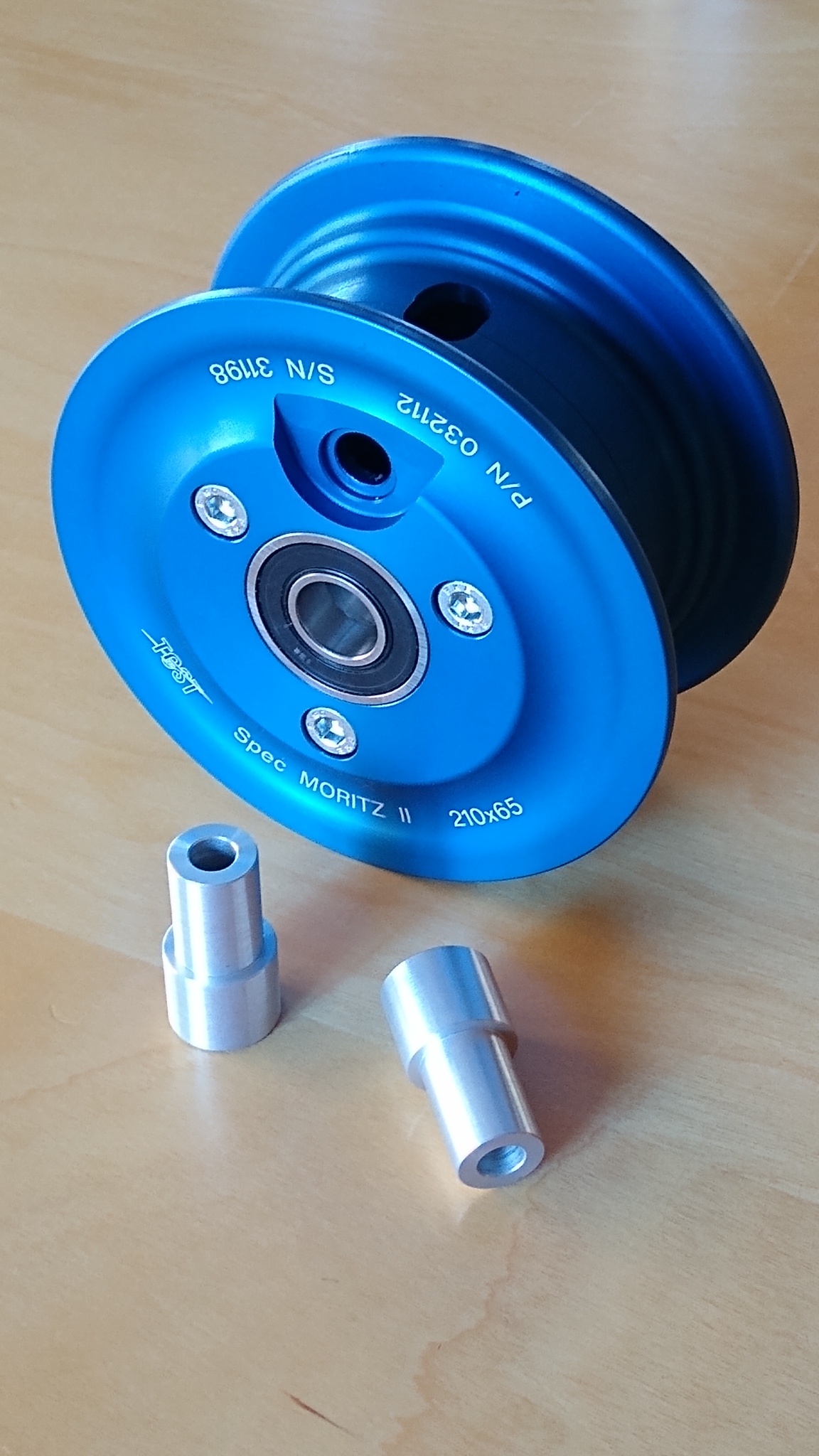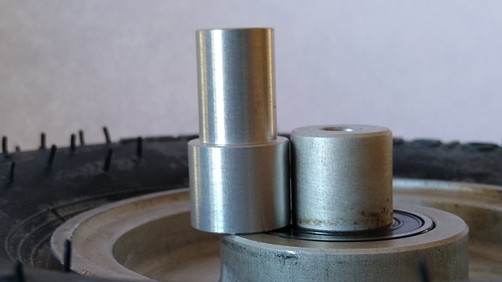 benettlr Posted November 21, 2021 Report Posted November 21, 2021 Steve, 1) The stock wheel is a bear to work with. In my experience, the key is to first support the wheel via a dummy axle post (secured rigidly in a workshop vise) and work one tire bead onto the wheel; then work the tube into the tire, then mechanically clamp (i.e. squeeze without pinching the tube) one sector of the tire together so that both tire beads can be worked together down into the "valley" at the mid-plane of the wheel, and then work the remainder of the second bead onto the tire. Talcum powder does help. Liquid soap can also be used, but expect a mess. It's hard enough to do in the workshop and quite impractical if you're stranded somewhere. 2) As HiFlite has pointed out, the Tost Moritz II is well worth using. This is a two-piece split wheel that allows easy tire/tube replacement. A spare tire and tube, plus a few basic hand tools, are all that are needed in the aircraft to avoid being stranded. I can confirm HiFlite's information that there is a small difference in the hub width (and thus bearing spacing) of the two wheel types, which necessitates some adjustments to the spacers. Specifically, the Tost wheel is slightly wider than the stock wheel and so, if the stock shoulder spacers are placed into the Tost bearings, the overall spacer-to-spacer distance ends up slightly larger than the gap between the fork legs and it won't fit. There are a couple of ways to deal with this: (a) Place the stock spacers in a lathe and turn off a millimeter or so (sometimes a fraction of a millimeter or so) from the inside shoulder of each spacer. To figure out how much material to remove, place the stock shoulder spacers into the Tost wheel, measure outside-to-outside across the spacers, and compare with a measurement taken inside-to-inside between the fork legs. Take the difference between the two measurements and use half the value for the amount of material to remove from under each shoulder. One consideration (issue) with this method is that the hollow spacer tube (between bearings) of the Tost wheel has a 12mm bore, whereas the hollow spacer tube between the bearings in the stock wheel has a 6mm bore (in order to fit the 6mm axle bolt). Re-using the stock spacer tube (compression tube), by transferring it over to the Tost wheel, won't work because it'll be too short and using the included Tost spacer tube is questionable because there won't be anything to hold it concentric with the 6mm axle (i.e. not a good idea to allow the Tost hollow spacer tube to orbit the axle). A new spacer tube (with length equal to the Tost spacer tube and bore matching the stock tube) can be turned on the lathe. Alternately, a sleeve (with 6mm ID and 12mm OD) could be inserted into the Tost spacer tube. (b) Another option is to order a pair of FTCLA flanged collars from Misumi. This is a "configurable" part and dimensions can be specified as needed to fit the requirements. For example, a configured part number might be FTCLA-V6-D12-H15.5-T13-L30. https://us.misumi-ec.com/vona2/detail/110300235050/ . The V6 corresponds to the axle bolt hole size, the D12 corresponds to the bearing ID, the H15.5 is the shoulder OD, the T13 is the shoulder length (this is the value that needs to be determined according to the fork spacing), and the L30 is the overall length. The length of the shank that goes though the bearing and into the hollow compression tube between bearings is thus 30mm - 13mm = 17mm. Note that the L30 can be any reasonable number, just not too long otherwise the shanks of the two opposing spacers will meet at the middle of the wheel assembly. The main benefit of having the shank length greater than the bearing width (8mm) is that the extended shank will extend past the bearing and hold the 12mm ID Tost spacer tube concentric with the 6mm axle (avoiding the issue noted in the previous paragraph). The shank length can be made any length up to a value that is shy of the two shoulder spacers meeting in the middle of the wheel assembly. Since the shoulder length (T13 in the example) can only be specified in 1mm increments, generally round the required dimension down to the nearest millimeter (or if the required value is really close to the next larger increment, round up and a tiny amount of flex in the fork legs will accommodate it). It is also possible to specify one part with a shoulder length one millimeter more than the other (for example, order one with T13 and the other with T14). Note: the stock spacers are not necessarily identical either. For any fine-tuning of the shoulder-to-shoulder distance, some 0.2mm, 0.3mm, or 0.5mm thick stainless steel ring shims from Misumi can also be considered. For example, PACK10-CIMRS12-16-0.2, PACK10-CIMRS12-16-0.3, or PACK10-CIMRS12-16-0.5. https://us.misumi-ec.com/vona2/detail/110302677870/ . Cheers, Leo Tost Moritz II wheel with shoulder spacers. Side-by-side of Tost two-piece wheel with stock single-piece wheel. Close up of slightly shorter shoulder spacer (placed inverted) next to the installed stock spacer. 1 Quote