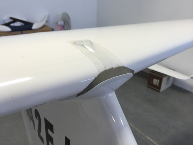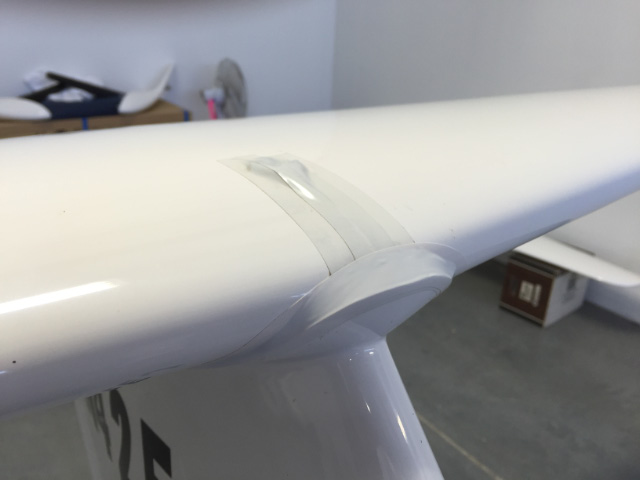 Registered No longer active on TMGA Posted May 2, 2016 Registered Report Posted May 2, 2016 I have no idea if this change in taping the tail improved the aerodynamics, but it does improve the appearance. The junction of the fin and horizontal stabilizer is difficult to tape smoothly, and a distinct gap forms between the two pieces. The first picture shows the gap filled with modeling clay that smooths the fin and stabilizer junction; the 2nd picture shows the clay covered by tape to protect it. Ideally, the saddle would have that a permanent fillet that perfectly matches the horizontal, so it could be streamlined and easy to tape, but this will do for now. I'm pretty sure the Mylar fairing I put on the elevator will increase the performance (and handling) much more, and it didn't take very long, either. See http://phoenixairusa.blogspot.com/2014/08/great-ideas-from-phoenix-owners.html Quote