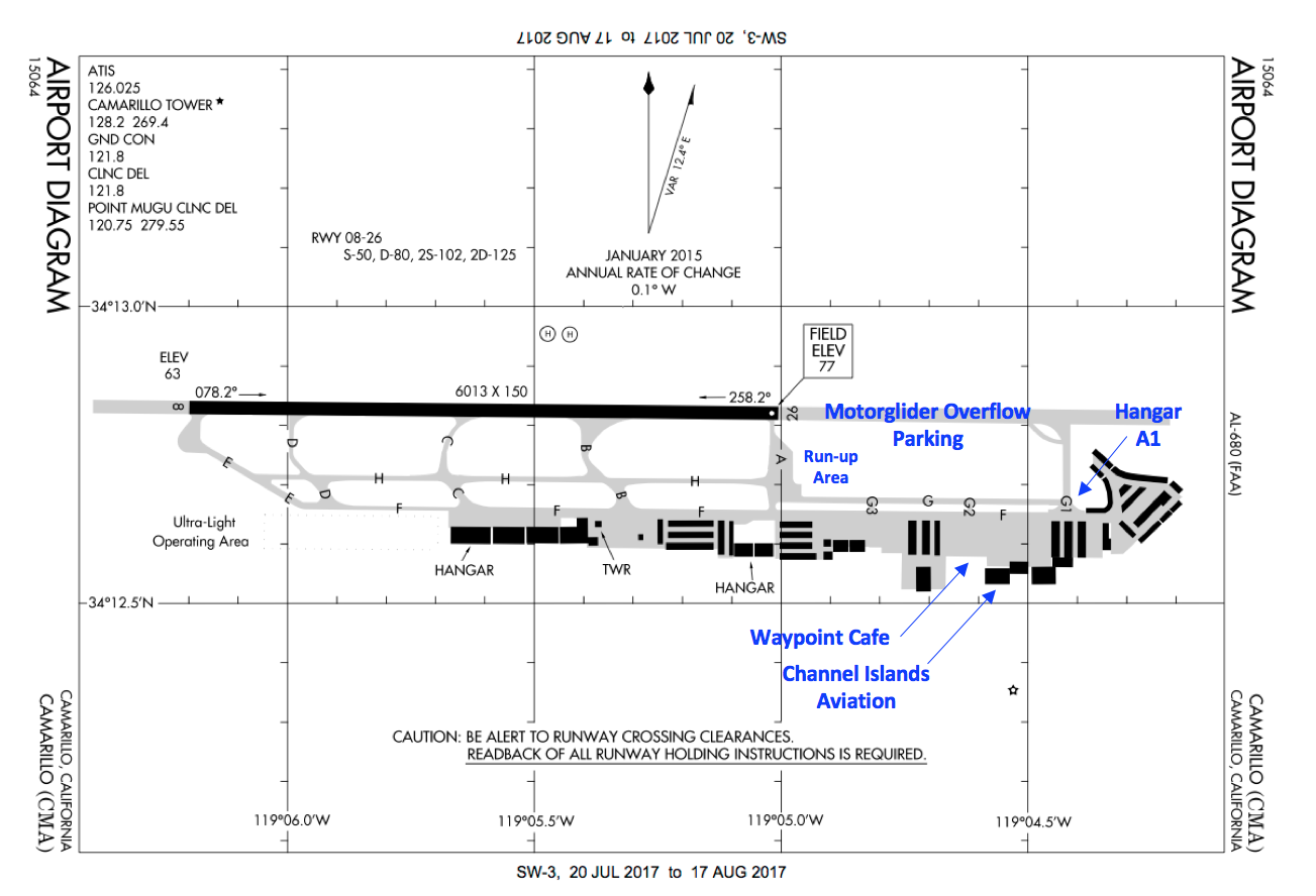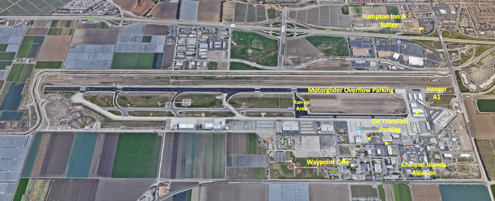 Richard Pearl Posted August 5, 2017 Report Posted August 5, 2017 We’re now three weeks away from the 7th annual West Coast TMGA Fly-In in beautiful Camarillo, CA. We selected Camarillo (CMA) because of the typically great weather, the size of the airport, its location to many TMG’ers, the many places to fly to for lunch, excellent soaring within a reasonable flight time, and for the many great side trips for those not flying. If you haven’t signed up, please do so ASAP. Remember, the event is open to everyone with an interest in touring motor gliders. There will be several types of TMG’s there and everyone is always ready, willing, and able to talk about their machines. We’ve added columns in the Event sign-up spreadsheet for attendance at the Thursday, Friday, and Saturday dinners. We’ve got to give the restaurants hard numbers, so if you’ve already signed up, please go in/back in to add the dinner information. Local coordinator Gabriel Cioffi has lined up some great trips for us. The schedule is as follows: Thursday, August 24th Arrival at CMA. Land and tie down in the Overflow Parking area. See diagrams, below. Dinner: Lure Fish House, Camarillo (259 W. Ventura St., Camarillo; 805.388.5556). Pay at the restaurant but advise on the website if you’re planning on joining us. Dinner at 7:00 pm. Friday, August 25th Breakfast: We suggest the Waypoint Cafe (325 Durley Ave., Camarillo; 805.388.2535). Voted nbr. 2 of 156 restaurants in Camarillo for breakfast/lunch. Note: This restaurant is VERY busy - and especially so on weekends - and they are accommodating us with our own area. To make this work, if you intend to have breakfast here, we suggest you arrive no later than 8:00 am. Briefing/Meet & Greet: 9:00 am; location: Waypoint Cafe - patio (reserved for us) Fly-Out: Santa Ynez Airport (KIZA); lunch at the Vineyard House (an early 1900’s historic home renovated into a marvelous restaurant). Pay at the restaurant but advise on the website if you’re planning on joining us. There’s a fixed price lunch available for $22 including the great food, tax, tip, and a soda. For anyone driving, it’s about a 1:45 hour trip each way; there’s the opportunity to visit the cities of Solvang and Santa Barbara, which are directly along the route - both are fascinating. Dinner: Ottavio’s Italian Restaurant. Fabulous Italian food; 1620 Ventura Blvd.; 805.482.3810. Saturday, August 26th Breakfast: We suggest the Waypoint Cafe (325 Durley Ave., Camarillo; 805.388.2535). Briefing/Meet & Greet: 9:00 am; location: Waypoint Cafe - patio (reserved for us) Fly-Out: Aqua Dolce Airport (L70). We’ll be joining other (power) pilots at the airports monthly BBQ. $7 for hot dogs, fixings, soda, etc. Dinner: Wood Ranch BBQ & Grill; (1101 Daily Drive, Camarillo; 805.482.1202). 7:00 pm reservations. Pay at the restaurant but advise on the website if you’re planning on joining us. For those not flying there’s plenty of worthwhile sites to visit, including wineries, the Ronald Reagan Library, Ventura Harbor, etc. Sunday, August 27th Breakfast: We suggest the Waypoint Cafe (325 Durley Ave., Camarillo; 805.388.2535). Briefing/Meet & Greet: 9:00 am; location: location: Waypoint Cafe - patio (reserved for us) Departure: about 10:00 am Hotel Hampton Inn & Suites Camarillo. We have a room block and special rate. Group Name: Touring Motor Glider Association Group Code: TMG Check-in: 24-AUG-2017 Check-out: 27-AUG-2017 Hotel Address: 50 W. Daily Drive Camarillo, California 93010 Phone Number: 805-419-8760 Rental Cars Car rentals (Enterprise) can be requested and reserved through Channel Island Aviation (next to Waypoint Cafe) by calling +1 (805) 987-1301. Either Hertz or Enterprise will deliver vehicle to FBO so it's ready when you arrive. The rate is $40 per day and they will try to do better if we have a good number of cars. They will have your car at their FBO station, which is next door to the Waypoint Café. Things to know: CMA is a secure airport and authorization is required for vehicular entry. We’re still working on this and will update the attendees before your arrival. We’ll be using Gil Scott’s hangar (A1) as an on-airport staging area. After arrival, tie down in the referenced area shown on the map and come on over for a cold water and a Welcome. Aiport Maps: Quote