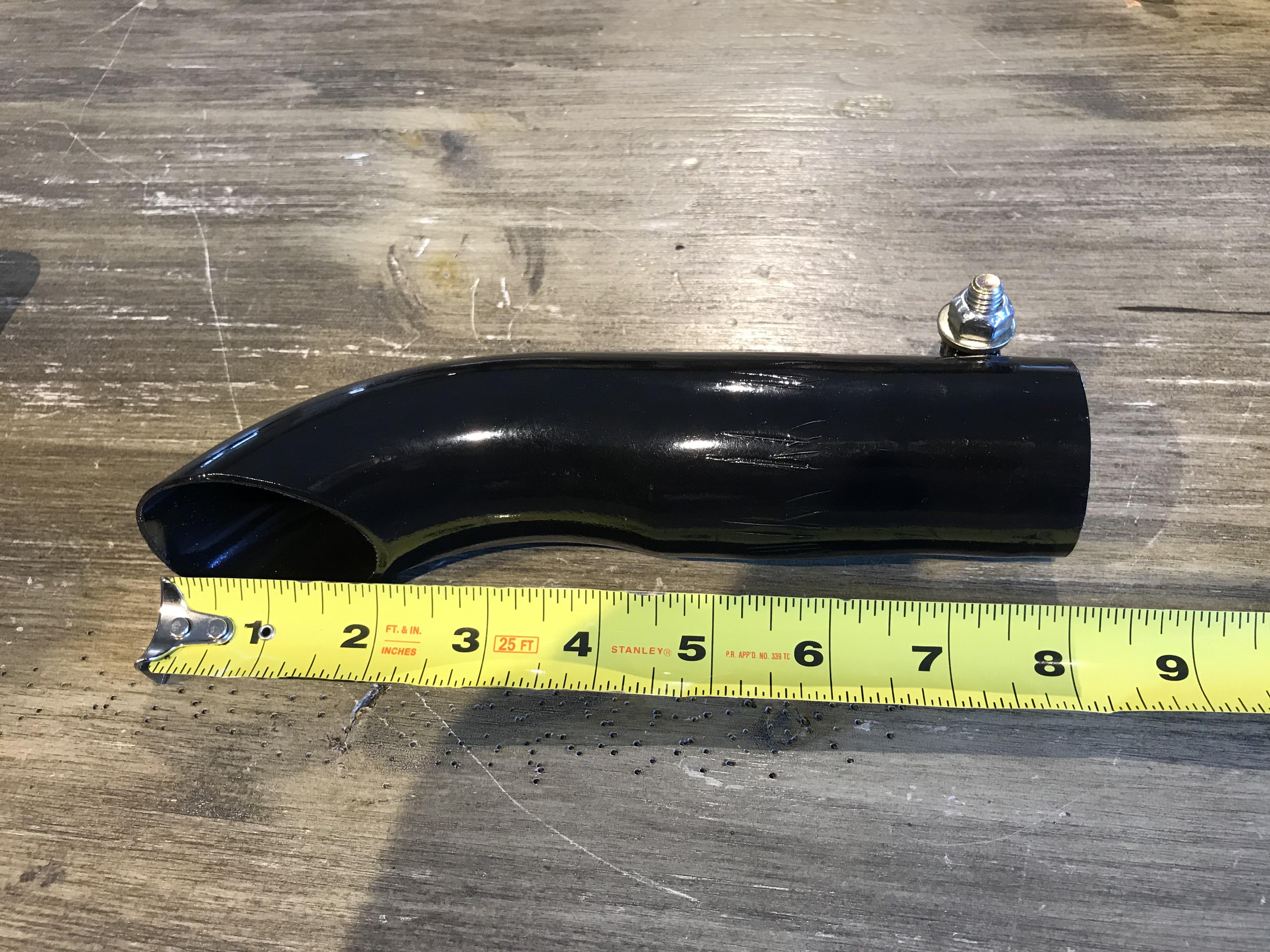 mikeschumann Posted June 30, 2018 Report Posted June 30, 2018 Attached is a picture of my installed diverter. The existing exhaust pipe is inserted almost half of the way into the diverter. If I was going to have another one built, I would try to have it made shorter, like yours. However, the total weight of my diverter is only 0.8 lbs, so I am skeptical that it would be worth redoing. I was a little concerned about using a hose clamp to attach the diverter, so I had the muffler shop weld on two brackets on either side of a single slot cut into the diverter colllar. I am using a bolt with a lock nut to tighten the collar over the exhaust pipe. It is a very solid connection. It will be interesting to see if it loosens up over time. Thanks for the inspiration to do this. Quote
