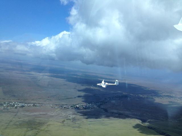Carat #008 in flight below convergent line on Hawaii Island